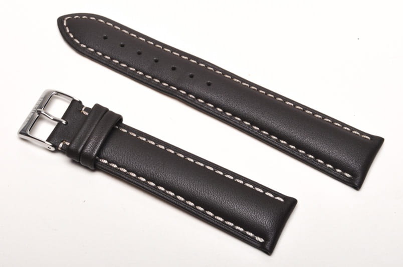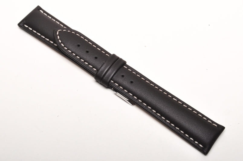 Wykonany ze skóry cielęcej, z delikatną fakturą. Matowy, przeszyty białą nicią. Pogrubiany przy mocowaniu, dalej cieniowany. Dwie szlufki, stalowa klamerka. Wersja XL.