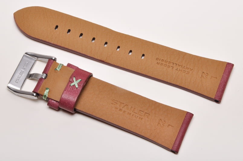 Pasek wykonany ze skóry cielęcej w naturalnej wyprawie. Matowy, z delikatną fakturą. Ozdobne szwy przy klamerce. Brzegi paska malowane. Prosty, surowy wygląd o charakterze retro. Podwójna szlufka, stalowa klamerka.