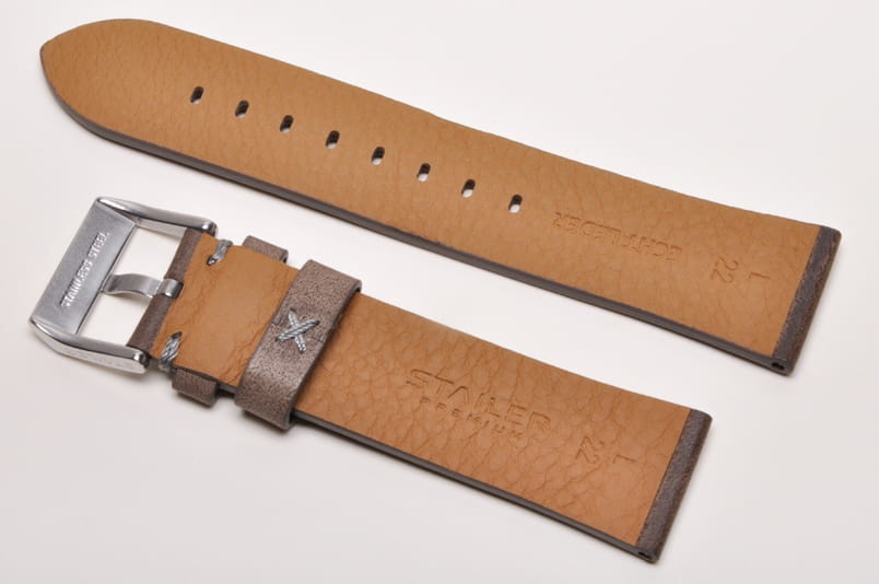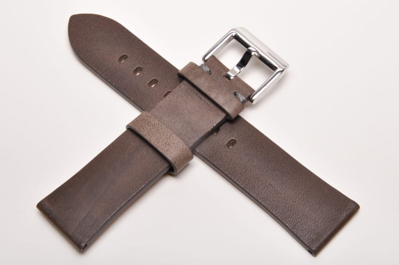 Pasek wykonany ze skóry cielęcej w naturalnej wyprawie. Matowy, z delikatną fakturą. Ozdobne szwy przy klamerce. Brzegi paska malowane. Prosty, surowy wygląd o charakterze retro. Podwójna szlufka, stalowa klamerka.