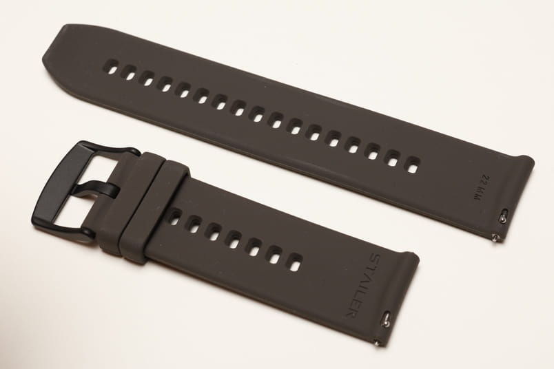Pasek wykonany z wysokiej jakości silikonu. Gładki, matowy. Stalowa, czarna klamerka, dwie szlufki. Wbudowane szybkie teleskopy.