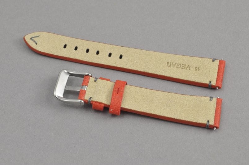 Wierzch paska wykonany z materiału Piñatex® - skóropodobnej tkaniny z włókien ananasowych. Futrówka z tworzywa imitującego skórę. Naturalna, lekko chropowata faktura. Płasko pogrubiany pasek z ozdobnymi pętelkami przy obu końcach. Stalowa klamerka, podwójna szlufka. Produkt wegański.