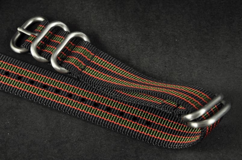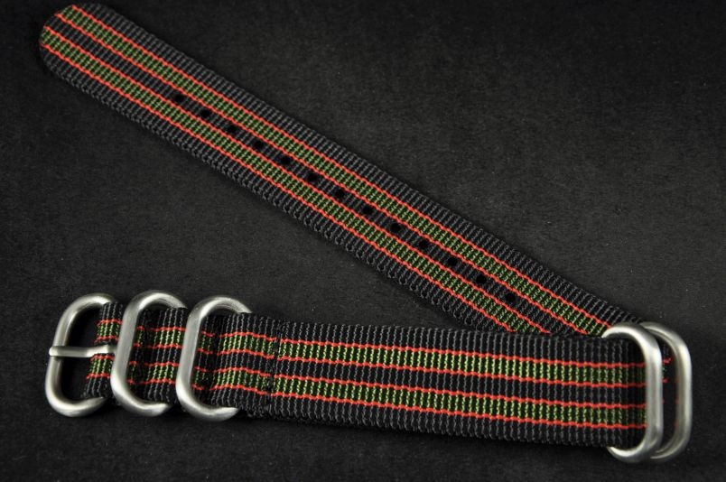 Pasek Zulu, Nylonowy, Czarno-zielono-bordowy, 20mm