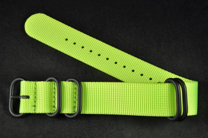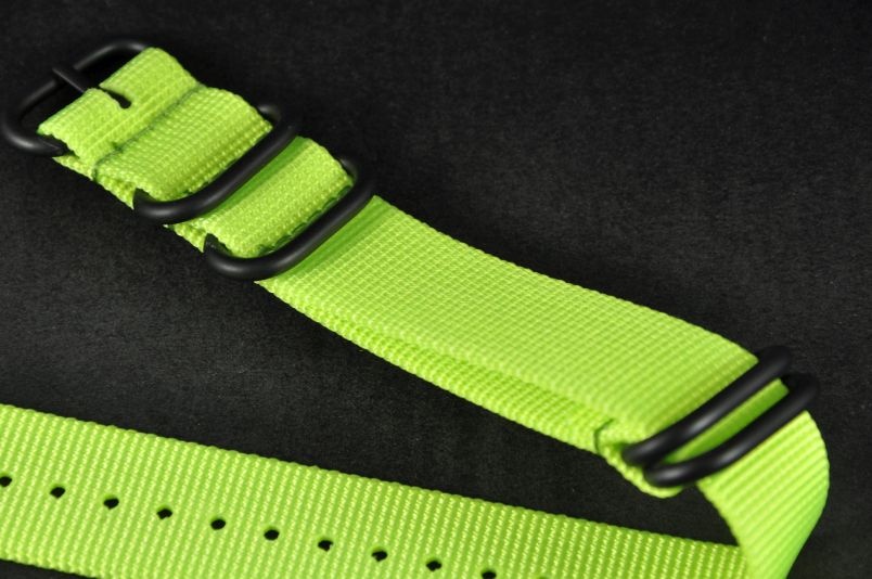 Pasek Zulu, Nylonowy, Jasno zielony, Czarne okucia, 22mm