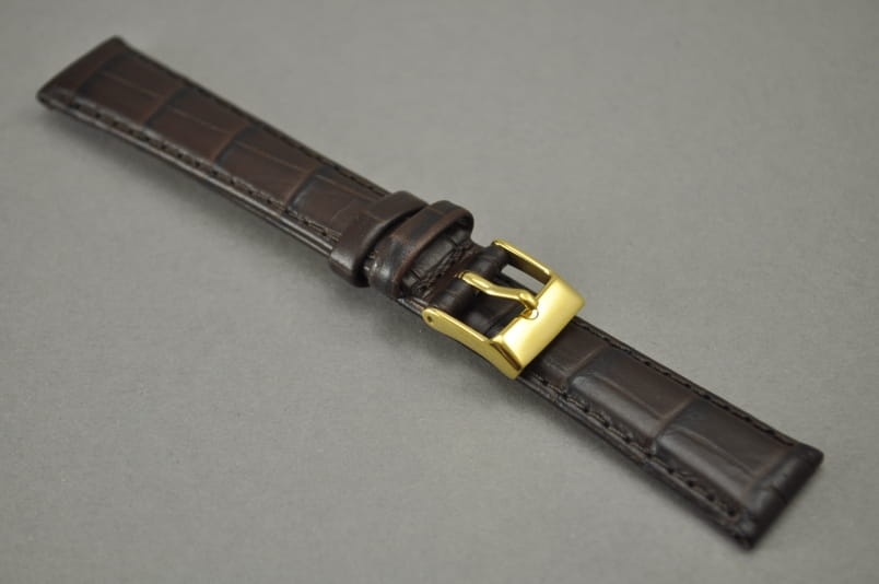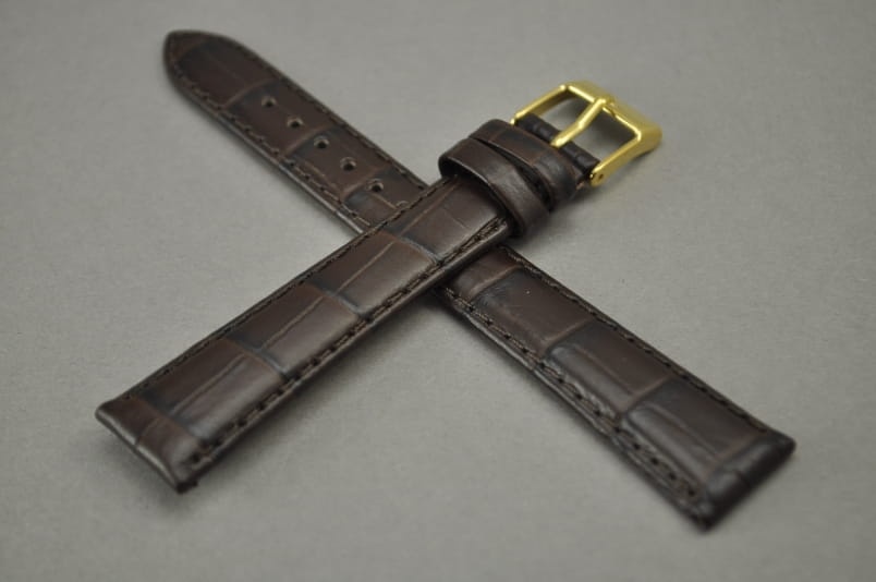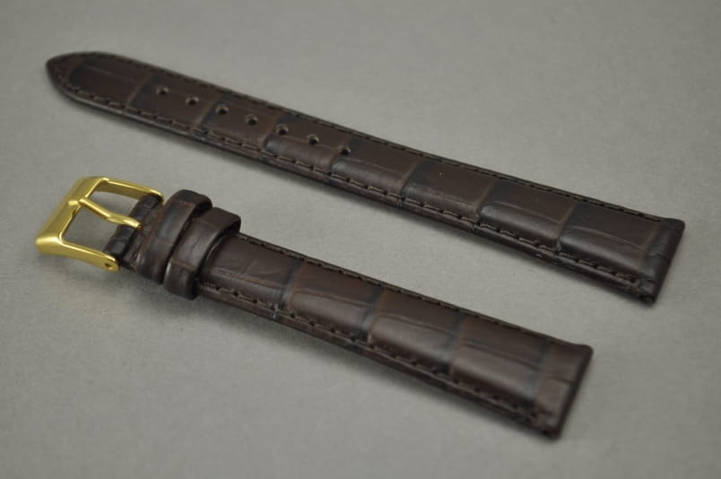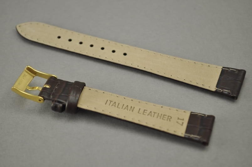 Pasek do zegarka, Skórzany, Ciemny brąz, 17mm