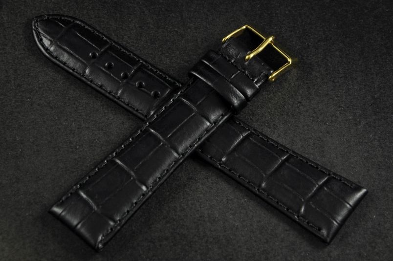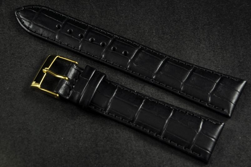 Pasek do zegarka, Skórzany, Czarny, 21mm
