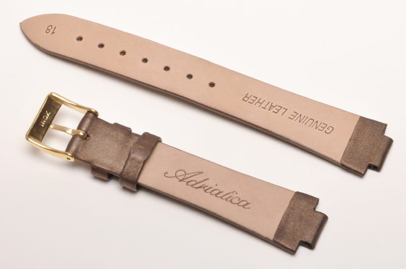 Pasek do zegarka Adriatica. Pasuje do modeli o referencji 3578.xxxx Skórzany, klejony pasek. Satynowe wykończenie w kolorze brązowym. Podwójna szlufka, stalowa klamerka z logo.