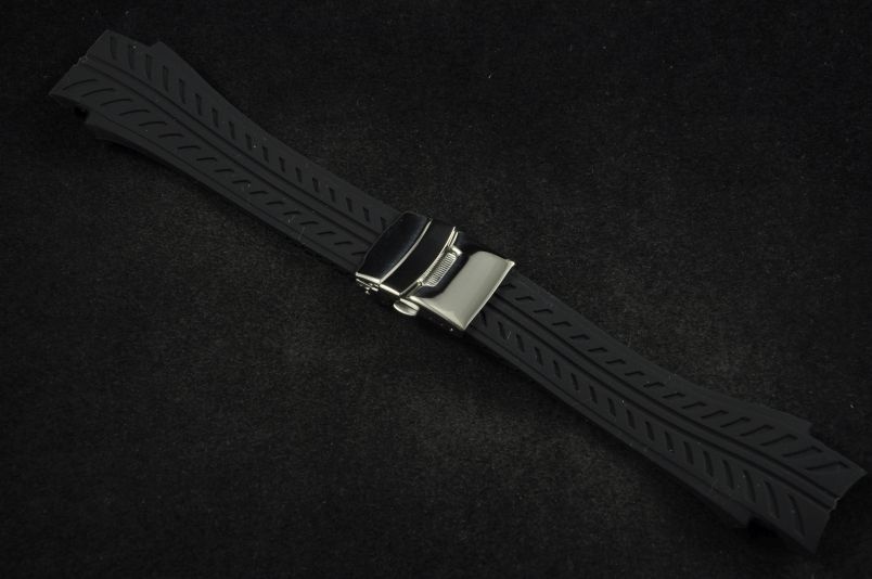 Wykonany z tworzywa sztucznego. Miękki i elastyczny. Ciekawe tłoczenie na wierzchu paska. Specjalnie profilowany. Stalowe zapięcie na przycisk. Możliwość skrócenia przez obcięcie paska.