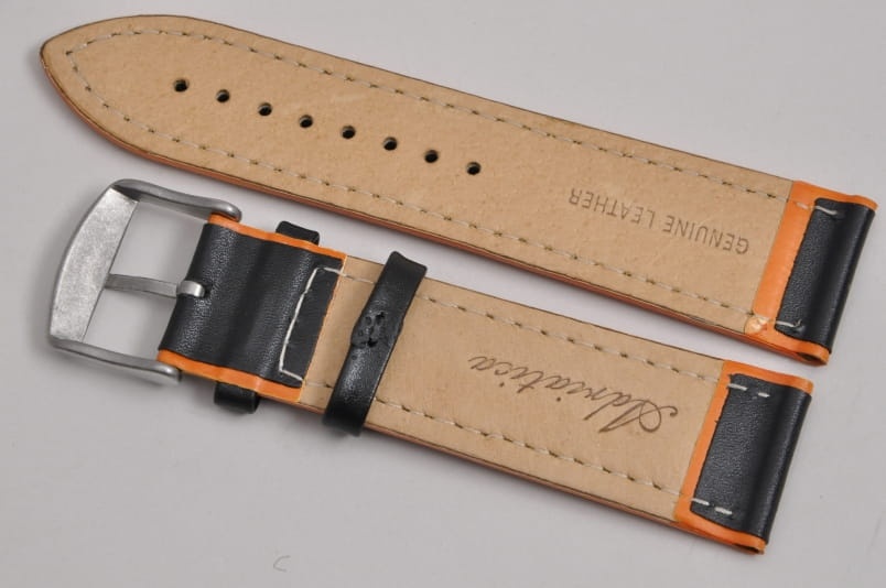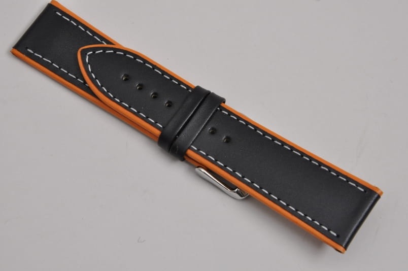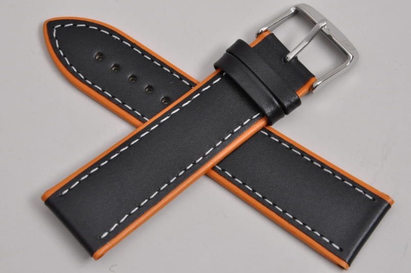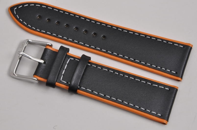 Pasek do zegarka Adriatica A8291, Skórzany, Czarno-Pomarańczowy, 24mm