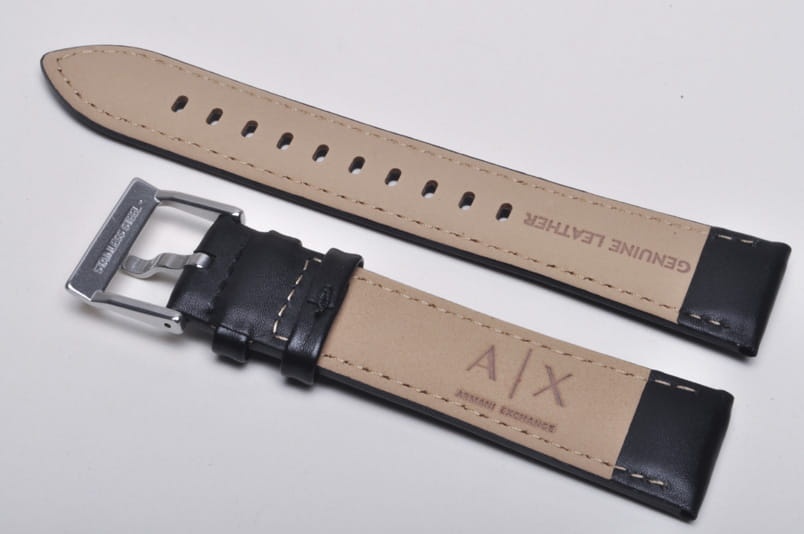 Oryginalny pasek do zegarka Armani Exchange. Wykonany z naturalnej, gładkiej skóry. Lekko pogrubiany. Przeszyty nicią pod kolor paska. Stalowa klamerka, podwójna szlufka. W komplecie teleskopy mocujące.