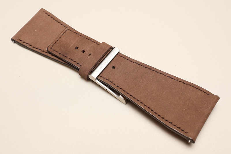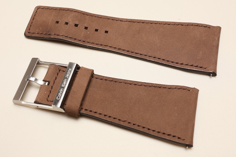 Ręcznie wykonany pasek pasujący do zegarków z serii CK Jeans Boundary zaczynających się od referencji K42111, K42121 i K42171. Wykonany ze skóry, w kolorze ciemno brązowym. Przeszycie w kolorze paska, gładka matowa skóra. Licowa, skórzana futrówka w jasnym kolorze. Jedna ruchoma szlufka. Grubość paska 2,5mm. Wersja XL