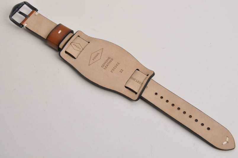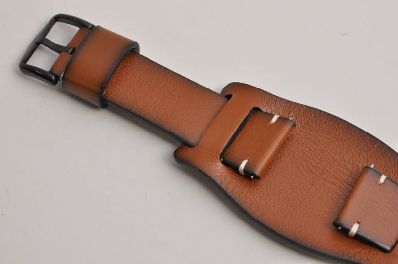 Wykonany ze skóry naturalnej o delikatnej fakturze. Grubość paska na całej długości to 3,1mm. Podwójna szlufka. Pasek z podkładką. Stalowa klamerka w kolorze czarnym z logo. W komplecie teleskopy do łatwego montażu.