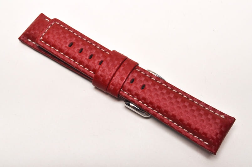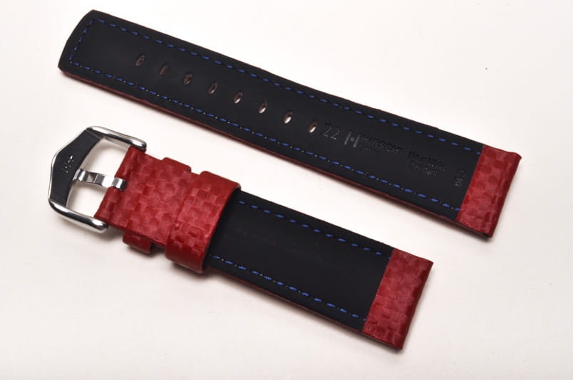 Pasek do zegarka Hirsch Carbon, Skórzany, Czerwony, 22mm