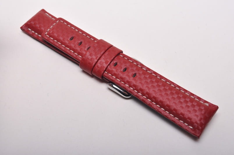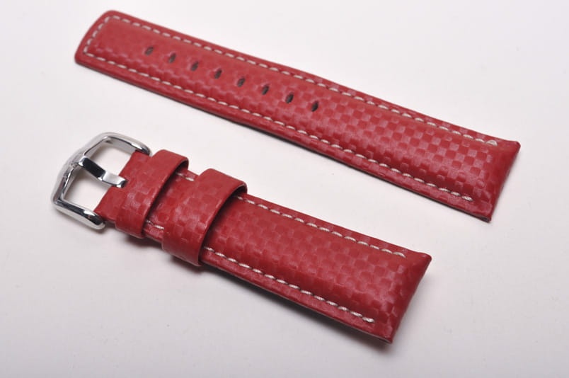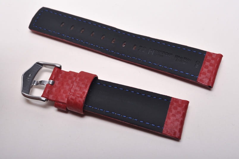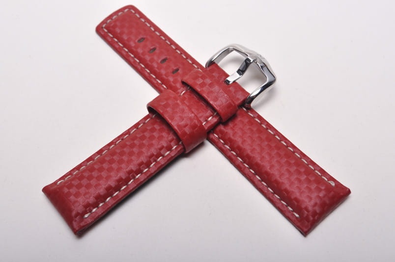 Pasek do zegarka Hirsch Carbon, Skórzany, Czerwony, 24mm