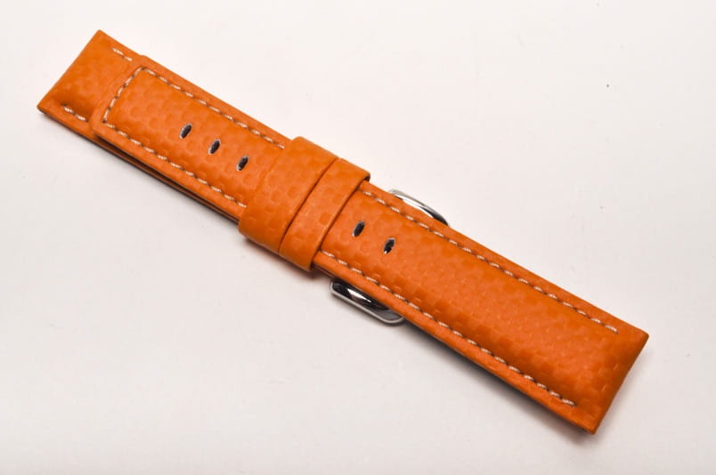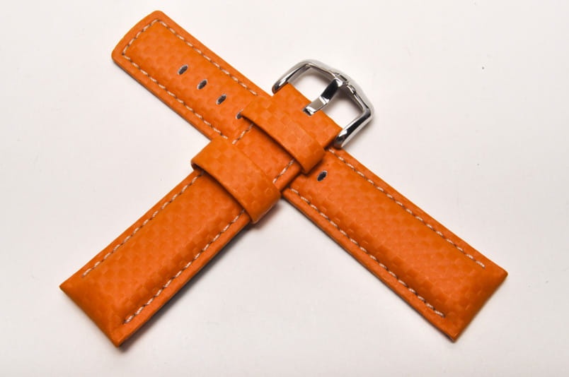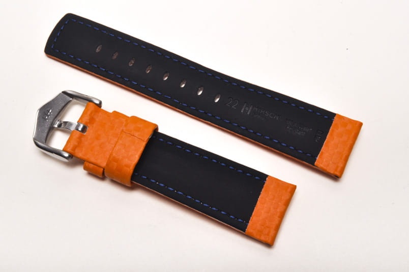 Pasek do zegarka Hirsch Carbon, Skórzany, Pomarańczowy, 22mm