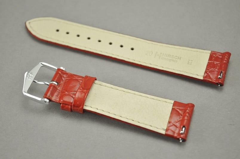 Pasek do zegarka Hirsch Crocograin, Skórzany, Czerwony, 18mm M