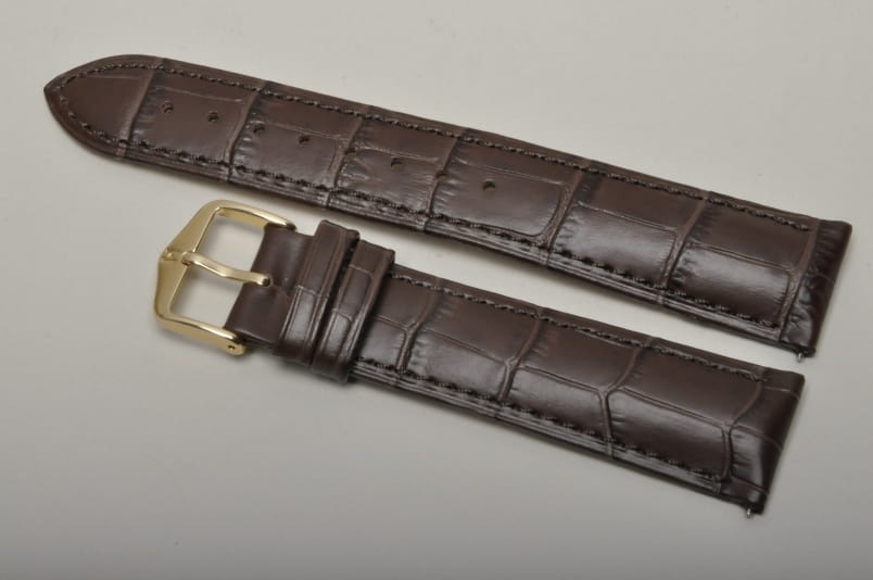 Do dużych zegarków z mocowaniem 20mm. Wykonany ze skóry cielęcej, tłoczonej na wzór skóry aligatora. Przeszywany nicią w kolorze paska. Pogrubiany przy mocowaniu do 4,4mm, dalej pasek cieniowany do 2,5mm. Podwójna szlufka, metalowa klamerka.