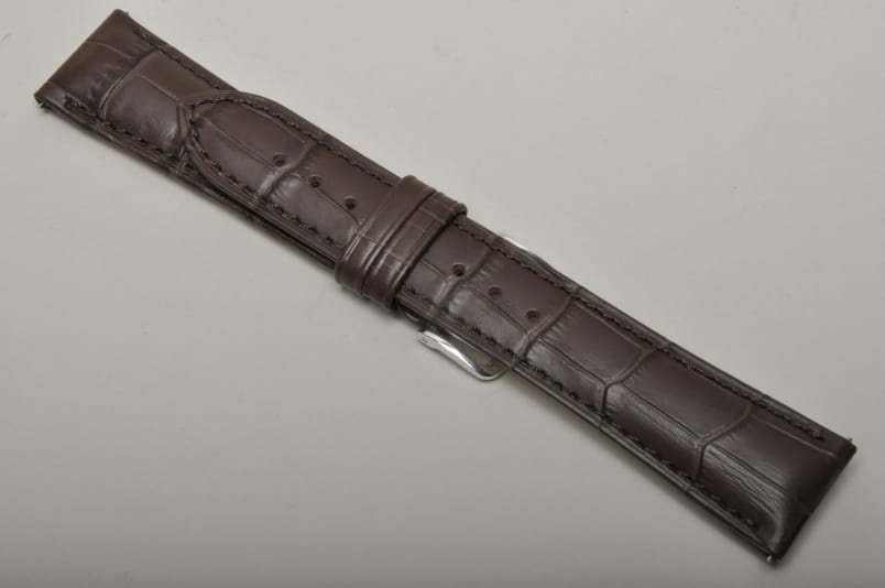 Do dużych zegarków z mocowaniem 21mm. Wykonany ze skóry cielęcej, tłoczonej na wzór skóry aligatora. Przeszywany nicią w kolorze paska. Pogrubiany przy mocowaniu do 4,4mm, dalej pasek cieniowany do 2,5mm. Podwójna szlufka, metalowa klamerka. Wbudowane szybkie teleskopy.
