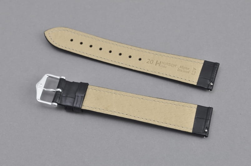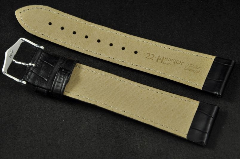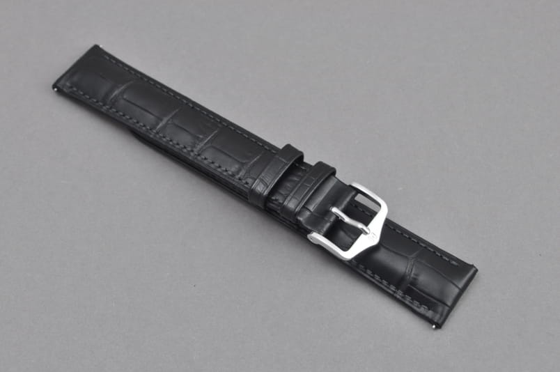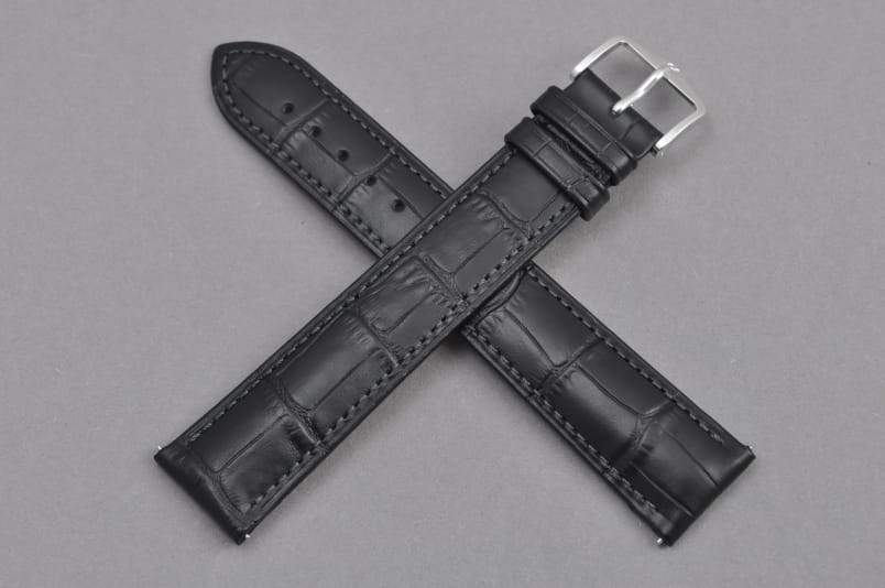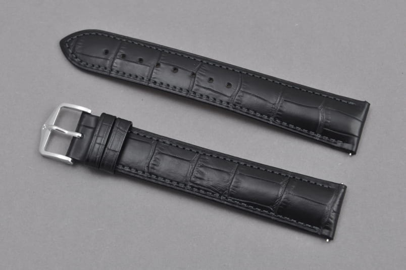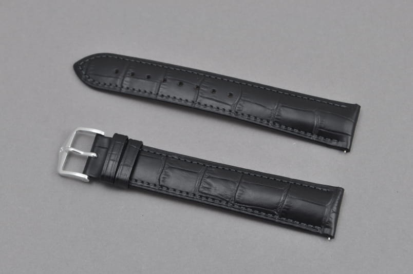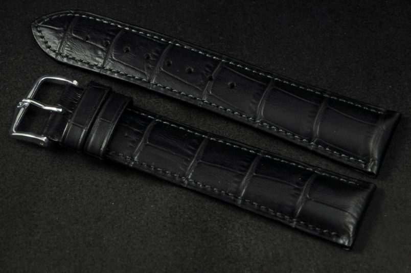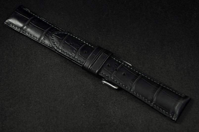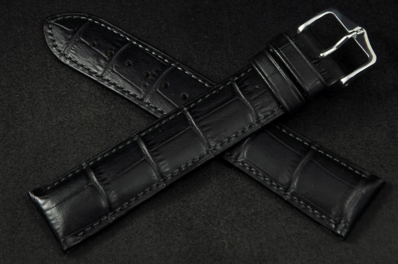 Do dużych zegarków z mocowaniem 20mm. Wykonany ze skóry cielęcej, tłoczonej na wzór skóry aligatora. Przeszywany nicią w kolorze paska. Pogrubiany przy mocowaniu do 5mm, dalej pasek cieniowany do 2,5mm. Podwójna szlufka, metalowa klamerka. Wbudowane szybkie teleskopy do łatwiej zmiany. Specjalna dłuższa wersja.