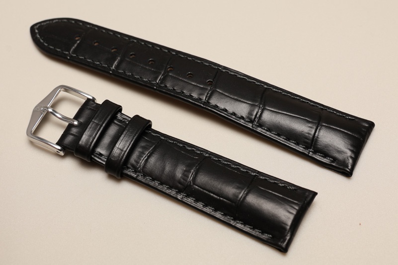 Do zegarków z mocowaniem 20mm. Wykonany ze skóry cielęcej, tłoczonej na wzór skóry aligatora. Przeszywany nicią w kolorze paska. Pogrubiany przy mocowaniu do 4,4mm, dalej pasek cieniowany do 2,5mm. Podwójna szlufka, metalowa klamerka.