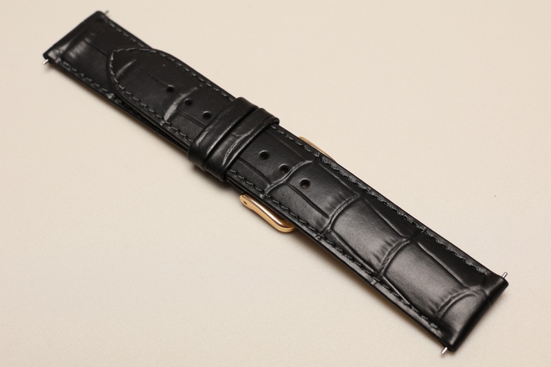 Do dużych zegarków z mocowaniem 20mm. Wykonany ze skóry cielęcej, tłoczonej na wzór skóry aligatora. Przeszywany lekko kontrastującą nicią. Pogrubiany przy mocowaniu do 4,5mm, dalej pasek cieniowany do 2,5mm. Podwójna szlufka, metalowa klamerka. Wbudowane szybkie teleskopy do łatwej zmiany.