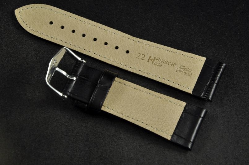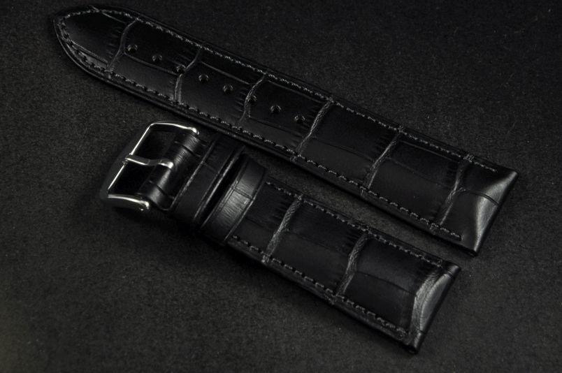 Do dużych zegarków z mocowaniem 22mm. Wykonany ze skóry cielęcej, tłoczonej na wzór skóry aligatora. Przeszywany nicią w kolorze paska. Pogrubiany przy mocowaniu do 4,4mm, dalej pasek cieniowany do 2,5mm. Podwójna szlufka, metalowa klamerka. Rozmiar M.