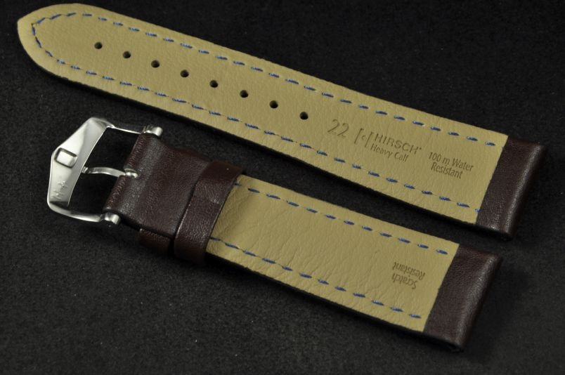 Pasek do zegarka Hirsch Heavy Calf, Skórzany, Ciemny brąz, 22/20mm