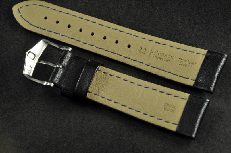 Pasek do zegarka Hirsch Heavy Calf, Skórzany, Czarny, 22/20mm