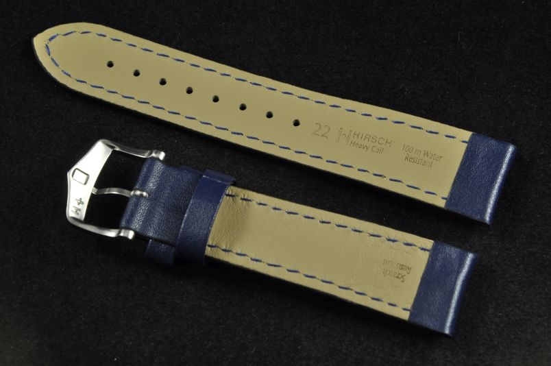 Pasek do zegarka Hirsch Heavy Calf, Skórzany, Granatowy, 22/20mm