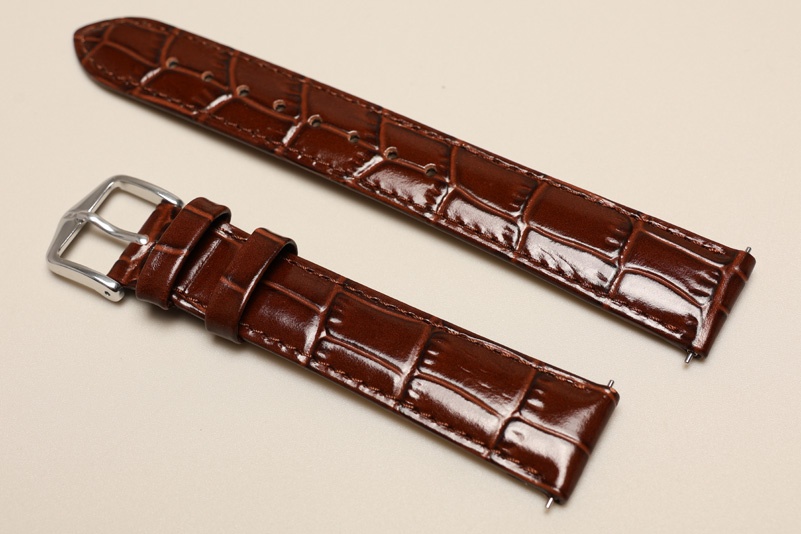 Do zegarków z mocowaniem 20mm. Wykonany ze skóry cielęcej, w połysku, tłoczonej na wzór skóry aligatora. Miękki i elegancki. Przeszywany nicią pod kolor. Delikatna futrówka Softglove.