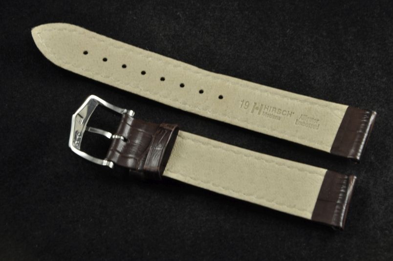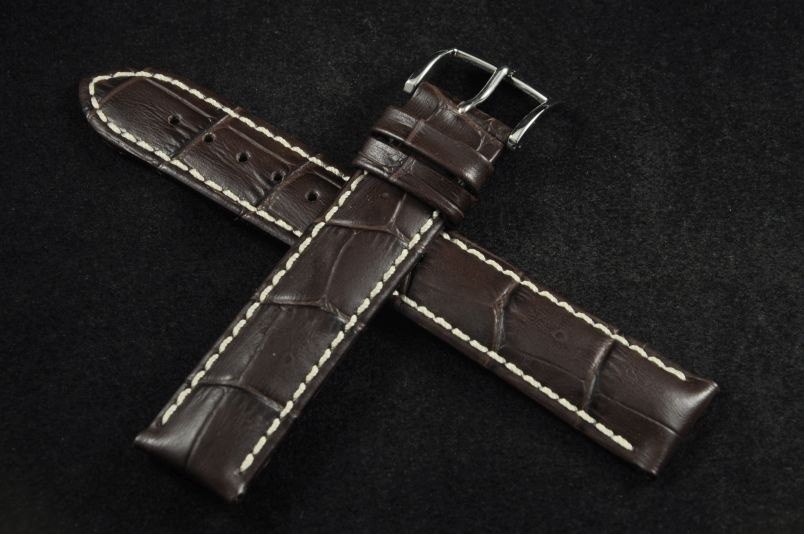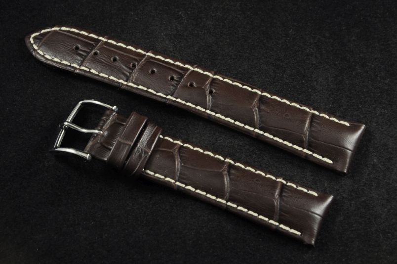 Do zegarków z mocowaniem 19mm. Wykonany ze skóry cielęcej, tłoczonej na wzór skóry aligatora. Przeszywany jasną, grubą nicią. Pogrubiany przy mocowaniu do 4,5mm, dalej pasek cieniowany do 2,5mm. Podwójna szlufka, stalowa klamerka. Wbudowane teleskopy do szybkiego montażu.