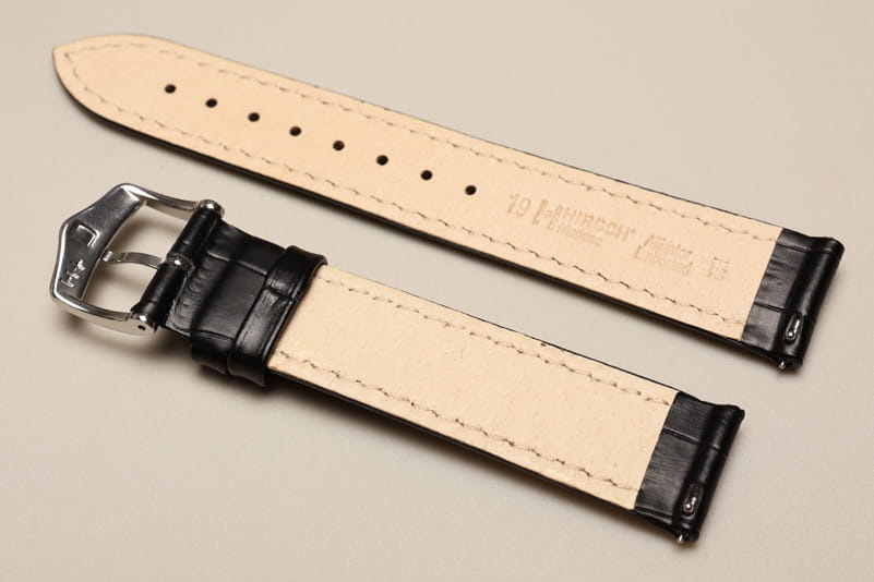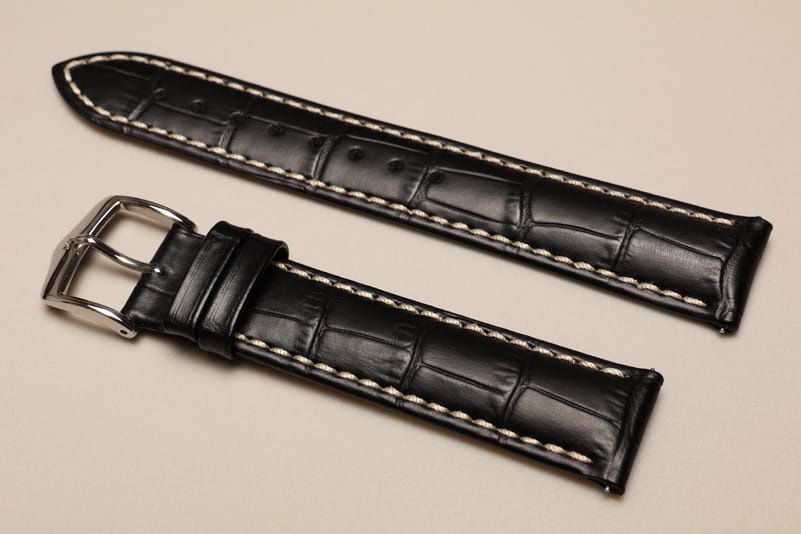 Do zegarków z mocowaniem 19mm. Wykonany ze skóry cielęcej, tłoczonej na wzór skóry aligatora. Przeszywany jasną, grubą nicią. Pogrubiany przy mocowaniu do 4,5mm, dalej pasek cieniowany do 2,5mm. Podwójna szlufka, stalowa klamerka.