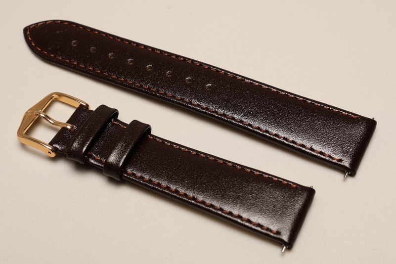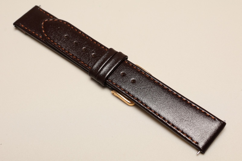 Klasyczny pasek wykonany ze skóry naturalnej. Delikatny połysk. Futrówka softglove - miękka i miła w dotyku. Przeszywany brązową nicią. Płaski - 2,8mm grubości. Podwójna szlufka, metalowa klamerka.