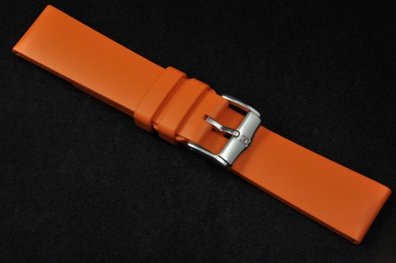 Pasek wykonany z wysokiej jakości kauczuku. Prosty, a zarazem bardzo funkcjonalny. Całkowicie wodoodporny, elastyczny i wytrzymały na zerwanie i temperaturę. Pogrubiany przy mocowaniu do 4,5mm, dalej pasek cieniowany do 3,6mm. Podwójna szlufka, aluminiowa klamerka.