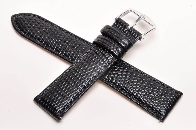 Do zegarków z mocowaniem 20mm. Wykonany ze skóry cielęcej, tłoczonej na wzór skóry jaszczurki. Przeszywany nicią pod kolor paska. Pogrubiany przy mocowaniu do 3mm, dalej pasek cieniowany do 2,5mm. Podwójna szlufka, metalowa klamerka. Krótsza wersja M.