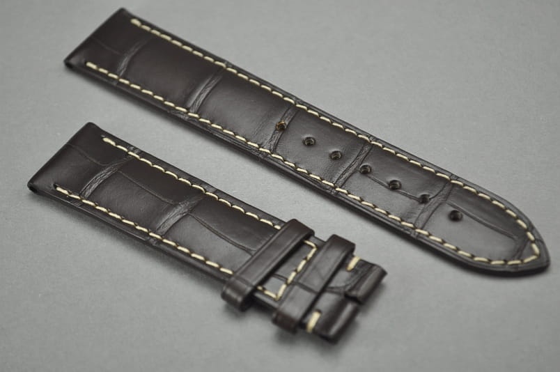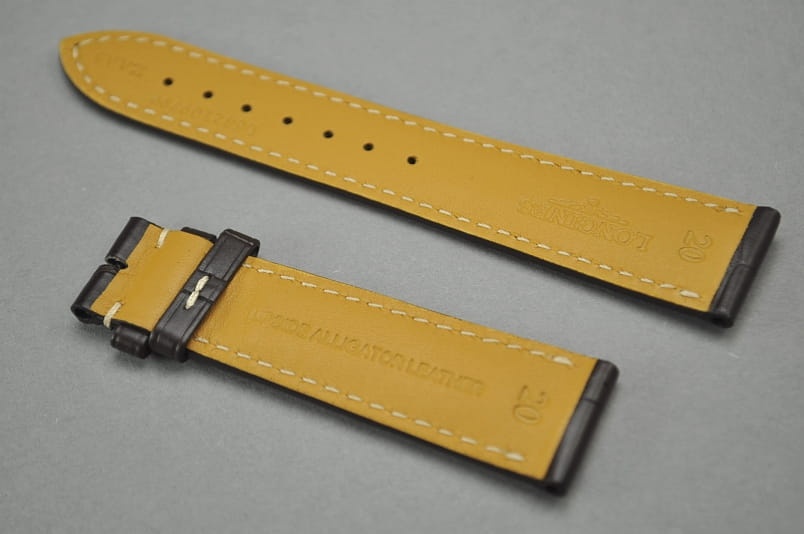 Pasek do zegarka Longines, Skóra z aligatora, Ciemny brąz, 20mm