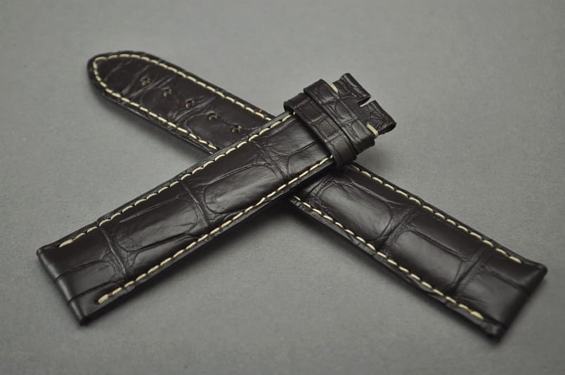 Pasek do zegarka Longines, Skóra z aligatora, Ciemny brąz, 21mm, XL
