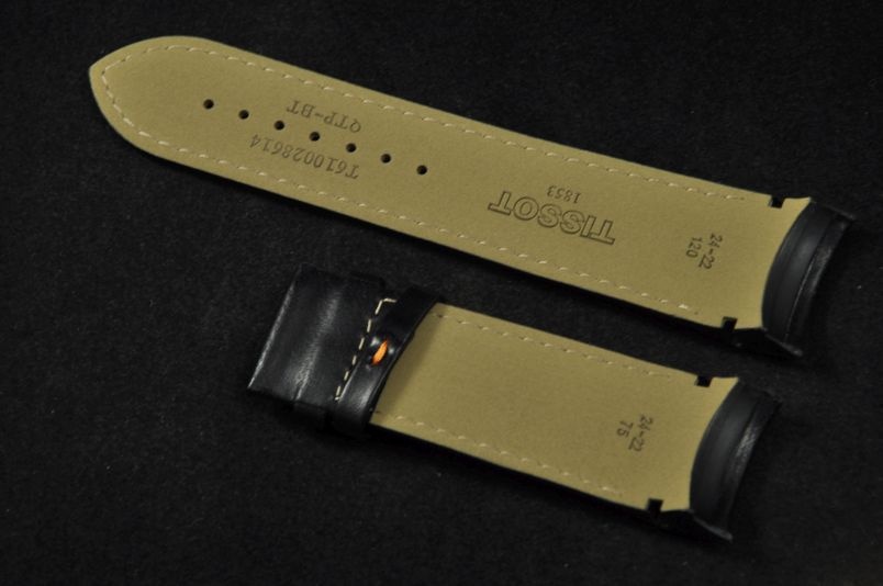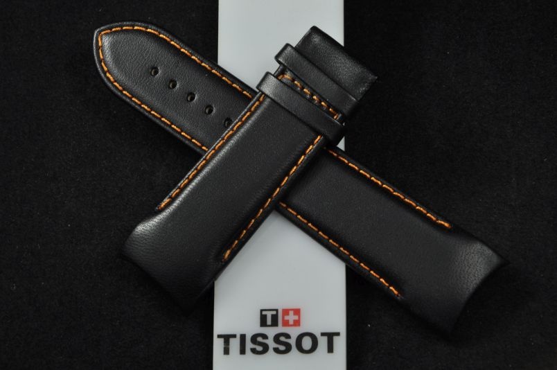 Oryginalny pasek marki Tissot, wykonany ze skóry. Gładki, z delikatnym połyskiem. Przeszyty pomarańczową nicią. Specjalnie profilowany. Podwójna szlufka. Pasek do zapięcia typu motylek. Sprzedawany jest sam pasek. Wersja XL.