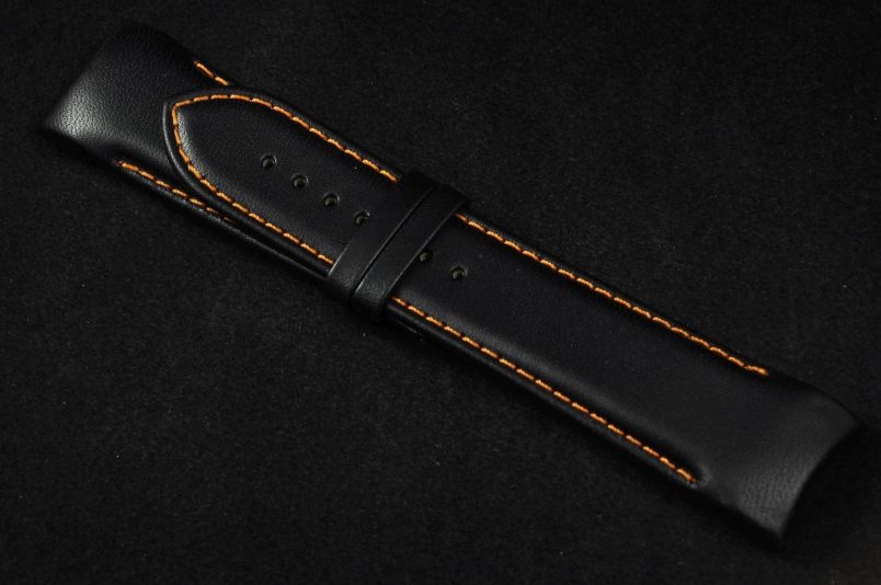 Oryginalny pasek marki Tissot, wykonany ze skóry. Gładki, z delikatnym połyskiem. Przeszyty pomarańczową nicią. Specjalnie profilowany. Podwójna szlufka. Pasek do zapięcia typu motylek. Sprzedawany jest sam pasek.