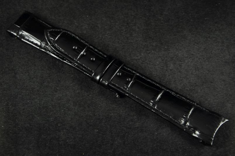 Oryginalny pasek marki Tissot, wykonany ze skóry. Faktura skóry aligatora, lakierowany, w kolorze czarnym. Przeszyty nicią pod kolor paska. Specjalnie profilowany. Podwójna szlufka. Pasek do zapięcia typu motylek. Sprzedawany jest sam pasek.