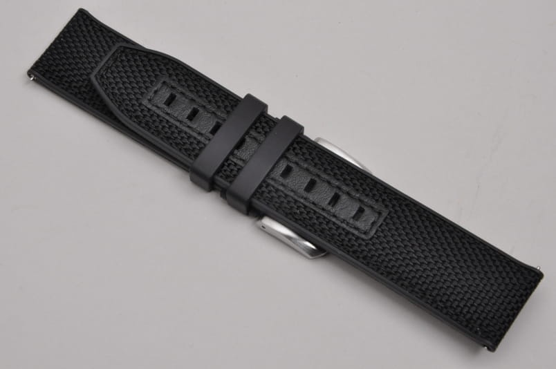 Oryginalny pasek marki Tissot, wykonany z silikonu. Wierzch skórzany, tłoczony na wzór włókna węglowego. Przeszyty nicią. Podwójna szlufka, stalowa masywna klamerka z logo Tissot.