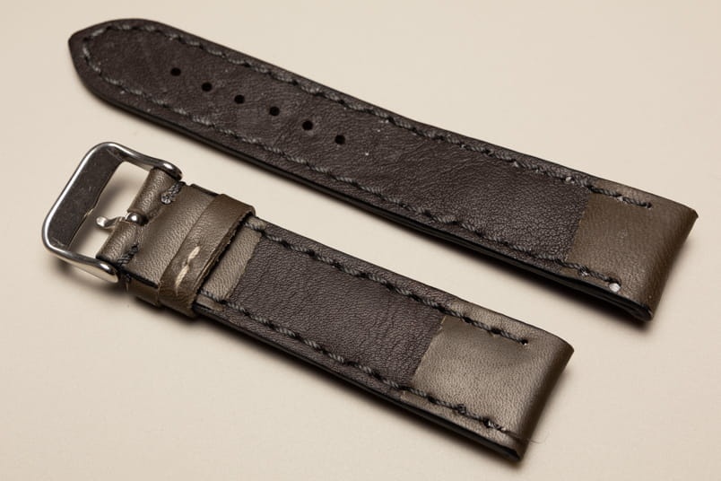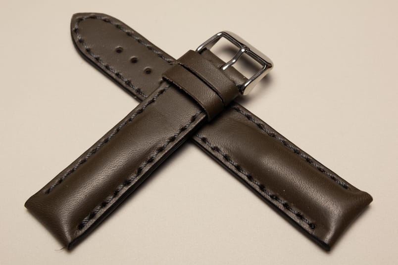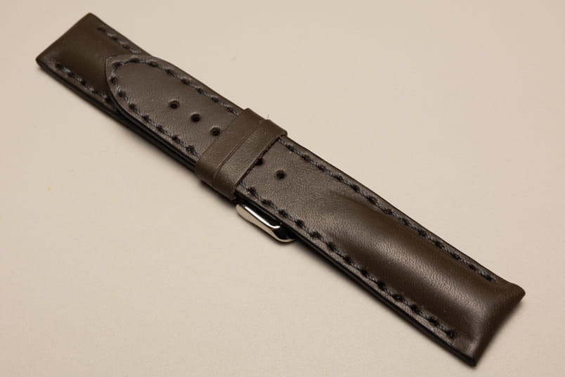 Pogrubiony od strony zegarka od 8,70mm do 5,60mm w odległości 5,5cm, dalej fragment z dziurkami grubości 3,3mm. Licowa, odporna na wilgoć futrówka w kolorze czarnym, dwie szlufki. Dedykowany do dużych, masywnych zegarków np. Breitling. Możliwość przełożenia oryginalnej klamerki.