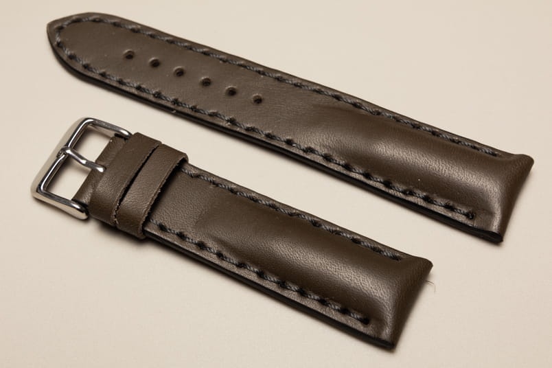 Pasuje do zegarków z mocowaniem 22mm oraz klamerką o szerokości 20mm. Wykonany z pięknej naturalnej skóry z lekkim połyskiem, przeszyty nicią pod kolor.