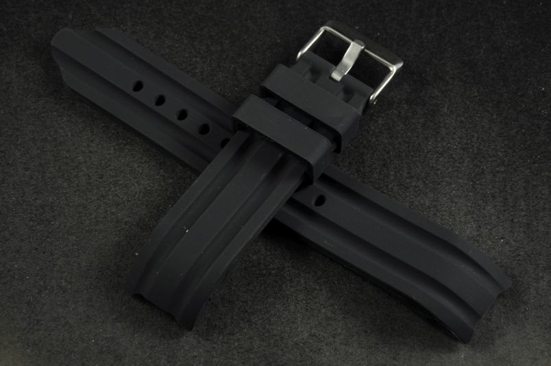 Pasek do zegarka profilowany, Silikonowy, Czarny, 20mm