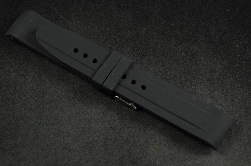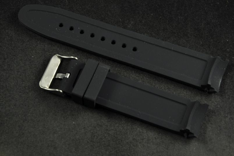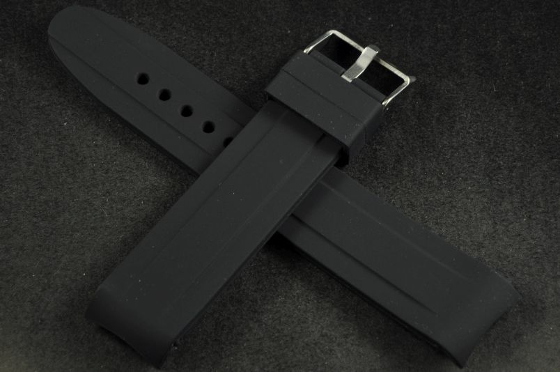 Pasek do zegarka profilowany, Silikonowy, Czarny, 22mm