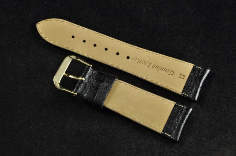 Pasek do zegarków z mocowaniem 22mm. Wykonany z naturalnej skóry. Gładki, miły w dotyku z delikatnym połyskiem, dość miękki. Przeszyty nicią w kolorze paska. Podwójna szlufka. Specjalna krótka wersja.