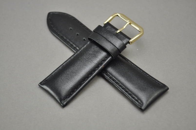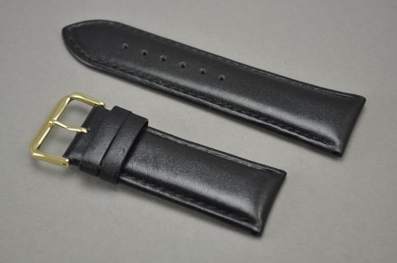 Pasek krótki do zegarka, Skórzany, Czarny, 24mm