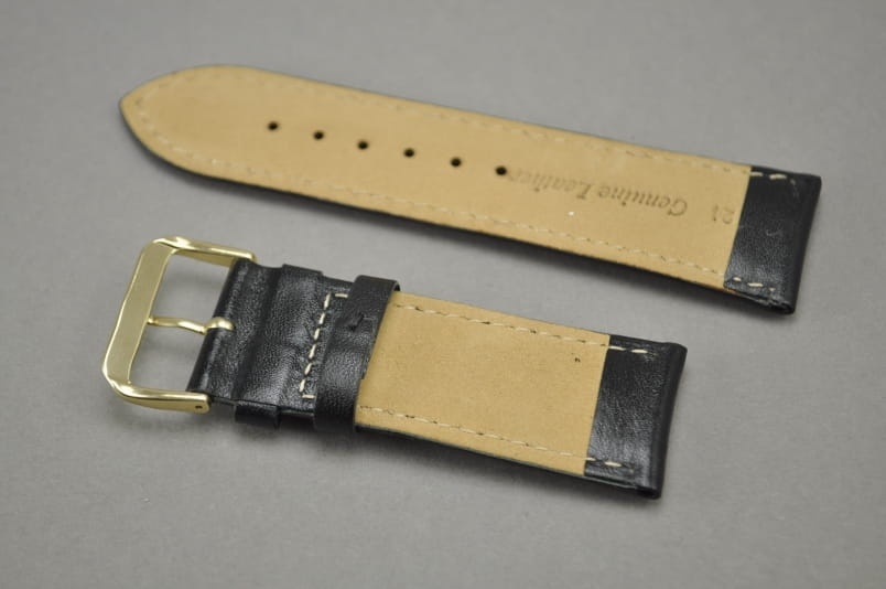Pasek do zegarków z mocowaniem 24mm. Wykonany z naturalnej skóry. Gładki, miły w dotyku z delikatnym połyskiem, dość miękki. Przeszyty nicią w kolorze paska. Podwójna szlufka. Specjalna krótka wersja.