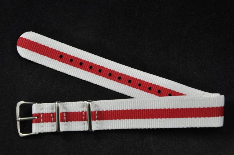 Pasek typu Nato, Nylonowy, Biało-czerwony, 18mm
