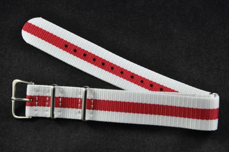 Pasek typu Nato, Nylonowy, Biało-czerwony, 20mm