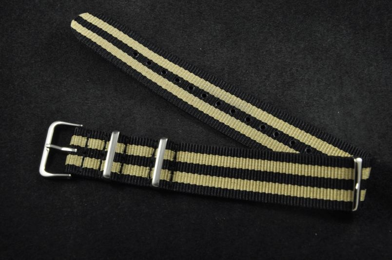 Pasek typu Nato, Nylonowy, Czarno-beżowy, 20mm